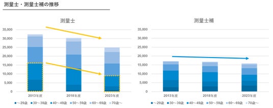 ※3 令和5年度測量業における測量士・測量士補に関する実態調査報告書(国土交通省)(https://www.gsi.go.jp/common/000263596.pdf)をもとに当社作成