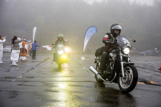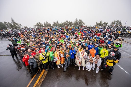 開催初日の10月11日(土)は、あいにくの雨天となり、標高1,440mの御殿場口新五合目駐車場は濃霧と冷え込みに見舞われました。しかし、日の出前から続々と集結したライダーたちの熱意により、会場は活気に満たされました。