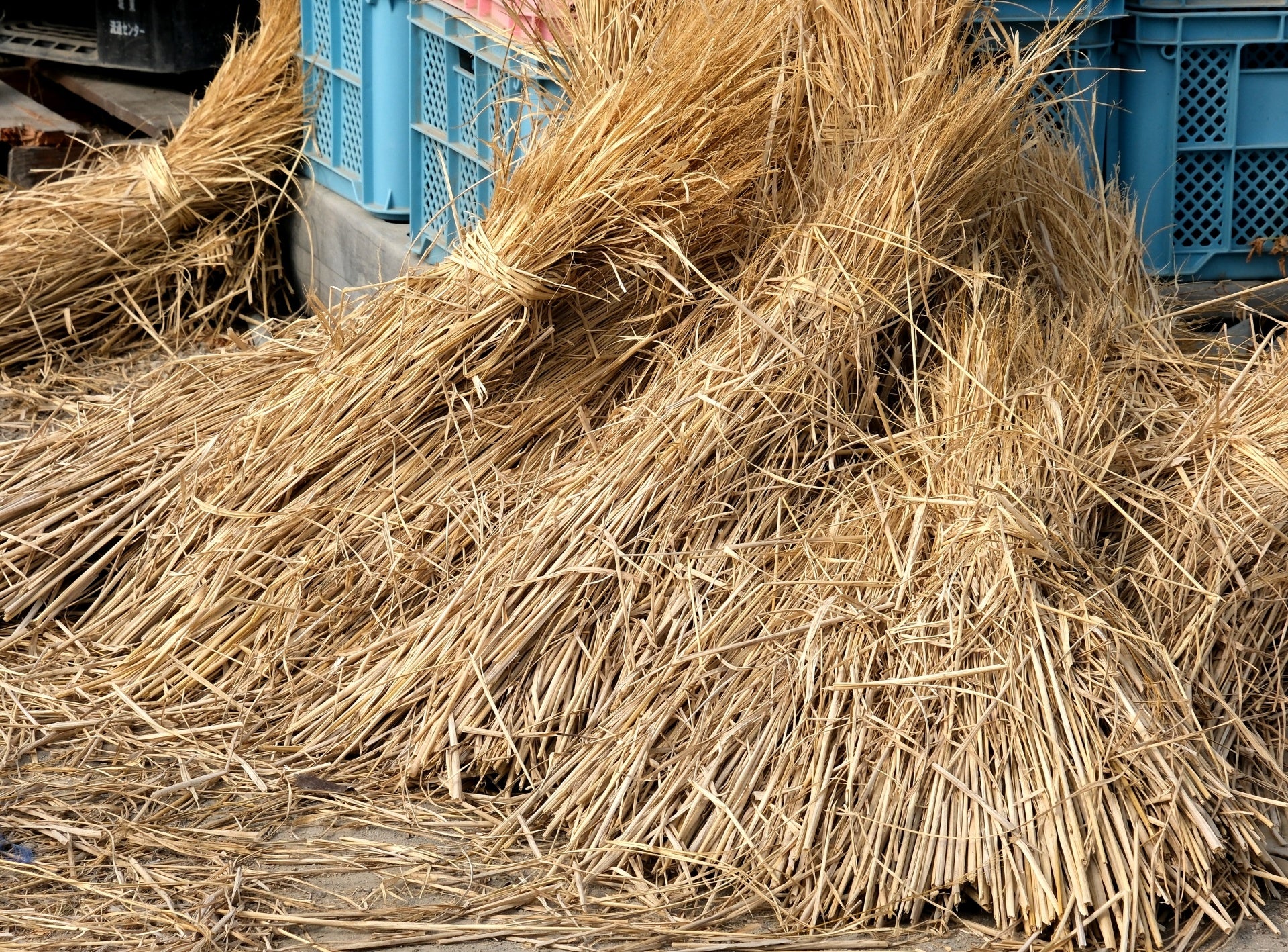折橋商店では、稲藁や茅草を用いた天然繊維のしめ縄も取り扱っています。天然繊維のしめ縄は、毎年交換することで清浄を保つという日本古来の考え方に基づいた存在です。