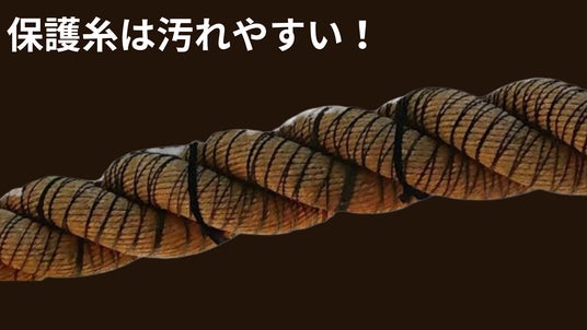 従来のしめ縄製造では、成形時に保護糸を巻いて形状を固定する工程が一般的でした。しかしこの保護糸は、設置時に外す手間がかかる、外し忘れると凹凸部分に汚れが溜まりやすく、美観を損ねるといった課題を抱えていました。