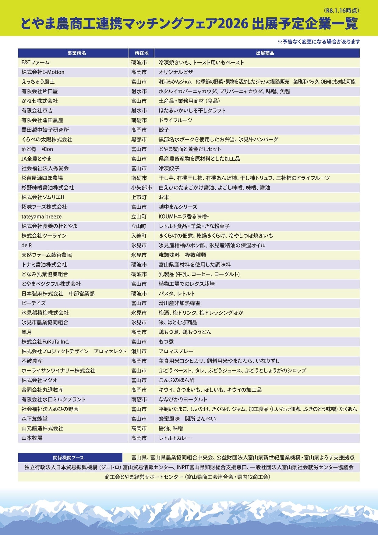 主催:富山県・富山県商工会連合会・富山県農業協同組合中央会