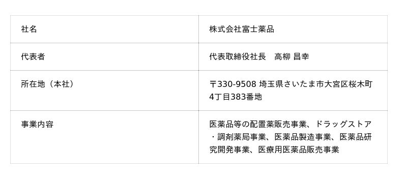 【株式会社富士薬品 会社概要】 URL:https://www.fujiyakuhin.co.jp