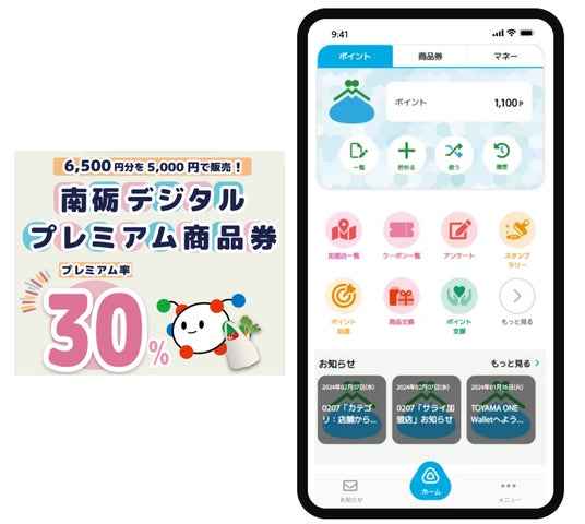 紙商品券の発行は行わず、「TOYAMA ONE Wallet」アプリ内でのみご利用いただけます。