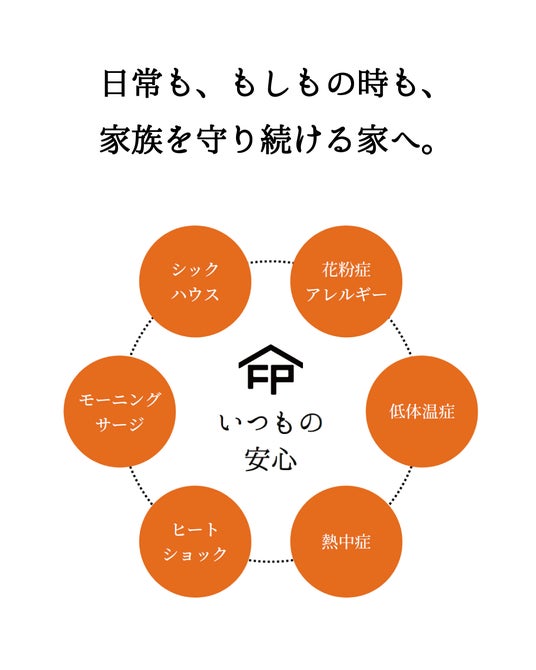 こうしたリスクに対し、「FPウレタン断熱パネル」を採用した「FPの家」は、家中どこでも温度差のない住環境を実現。365日、血圧変動の負担を抑えることで、住まう人の健康寿命を支える「いつもの安心」を提供し続けています。