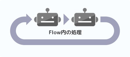 『Flow』は、クラウドBOTで作成した複数のBOTを連結し、一つのBOTとして実行・管理できる機能です。複雑なプログラミングは一切不要で、ノーコードで高度なワークフローを構築できます。