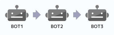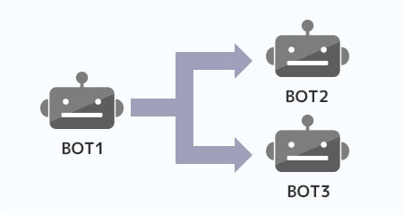 BOTを繋げて実行データの「取得・加工・登録」といった一連の工程を、役割ごとに分けた複数のBOTでリレー形式に実行できます。