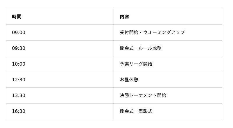 ※参加チーム確定後に正式なタイムテーブルを作成し、代表者さまへメールにてご案内します。